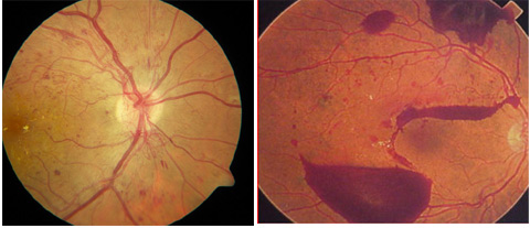 La diabetes produce alteraciones principalmente a nivel de la retina, en los diabéticos tipo I los daños aparecen normalmente a los 7-10 años de padecer la diabetes; en los diabéticos tipo II los daños aparecen normalmente a los 15-20 años de padecer la diabetes.
