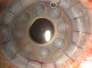 Este nuevo botón corneal queda suturado al borde la córnea del receptor.